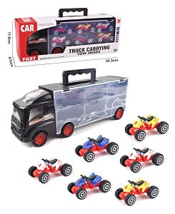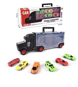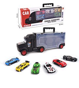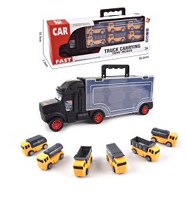 HAND-HELD GIFT BOX CONTAINER TAXIING TRAILER WITH 6 TAXIING ALLOY RACING CARS